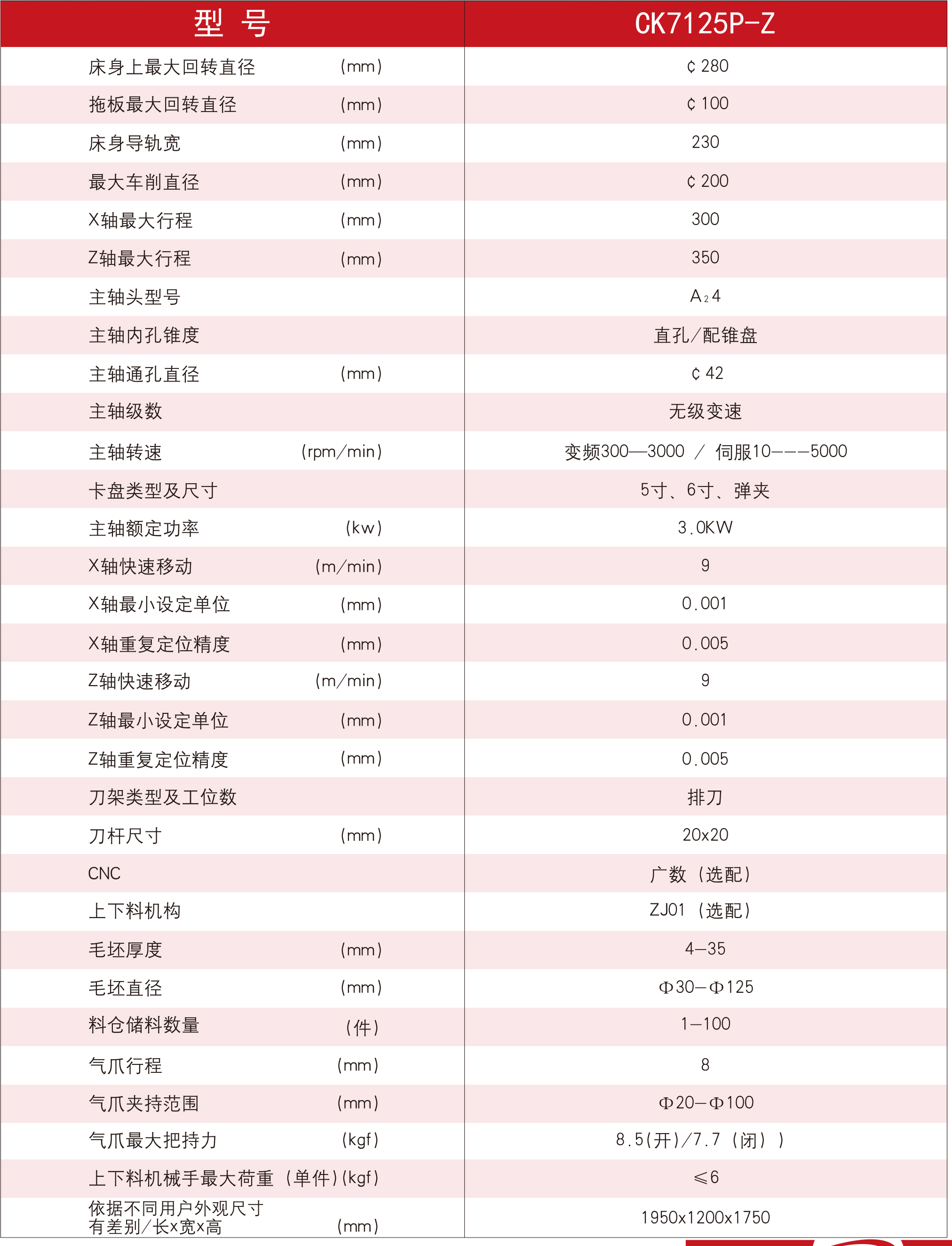 型号: CK7125P-Z